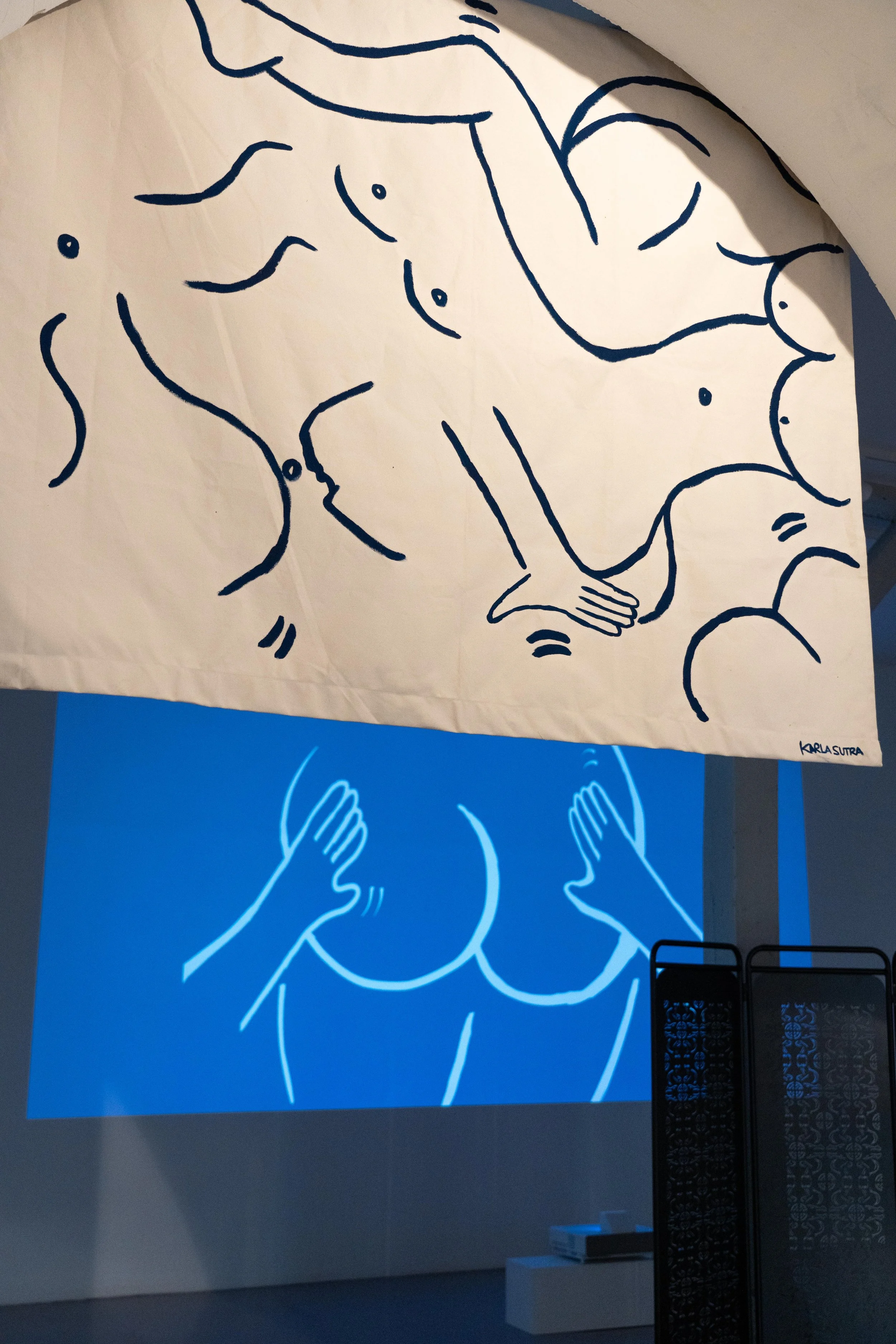 “In the Mood for you” 2X 120x120cm, acrylic on canvas / “Dorian” Mirror with Ateliers j&j Brussels